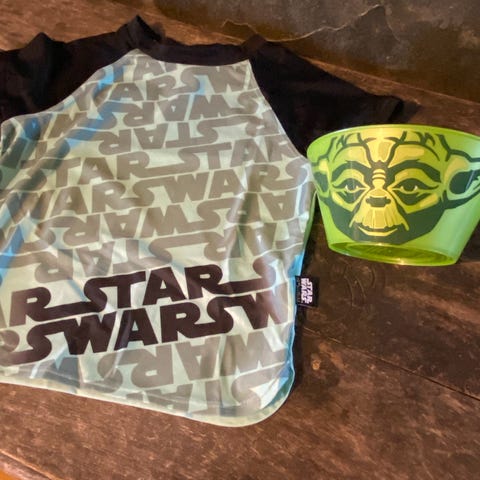 Star Wars T-skjorte for gutt i størrelse 128. T-skjorten er svart og laget av 100% bomull💕 Forsiden har stort Star Wars-motiv. Kort erm og rund hals. Passer til hverdagsbruk.