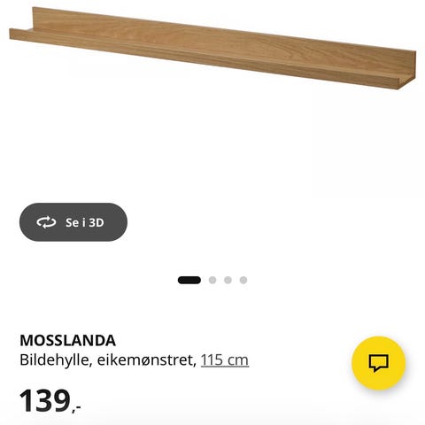 Svart IKEA Mosslanda bildehylle selges. Forpakningen er uåpnet.