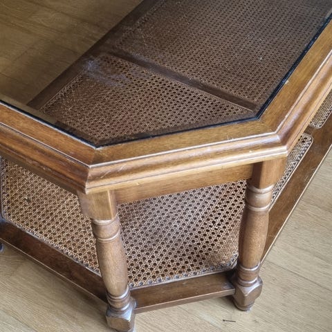 Sofabord / salongbord. To glassplater inkludert. Veldig lett vekt uten glassplatene. L: 140. B:80. H: 53.
