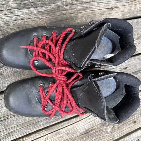 Alpina skistøvler i størrelse 43. Støvlene er laget i ekte lær og har svart farge. Passer NNN binding. Skistøvler, fjellskistøvler.