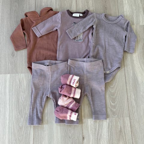 Kostyme for 18–24 måneder, 90 cm, pris for alt på bildet . H&M barneklær sett i str. 98 for unisex. Settet består av brun genser og bukse med lange ermer og lange ben, samt en ribbestrikket brun langermet topp. Plaggene er laget i viskosemateriale. Farge: brun. Passer barn rundt størrelse 98 (2–3 år).
