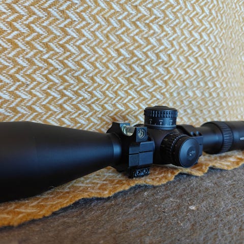 Schmidt og Bender PM2 5-25x56 kikkertsikte selges for 29500.- denne har vært montert og innskutt men aldri brukt. Cm klikk og P4 fine retikkel, som er med lys og er ikke medforstørrende retikkel. Medfølger flotte linsebeskyttere og neopren etui.