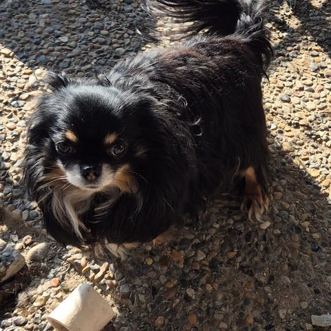 Vurderes omplassert hvis det rette hjemmet dukker opp. Han har ikke stamtavle men begge foreldre er chihuahua på 3,5 kg, så uvist hvorfor han er blitt så stor. Han veier ca 6 kg. Han er kastrert. Han kan ikke bo med små barn. Han har kronisk forstoppelse og er veldig kresen. Så lenge han ikke blir tvunget til noe er han verdens snilleste. Men napper hvis han blir sur. Flere friske valper etter seg. Vært frisk hele livet. Kun trukket noen tenner for 1/2 år siden. Han bor nå med andre hunder og det går fint, men bør ikke bo med hann hunder som er like gamle. Yngre går nok fint og han elsker hu bikkjer. Han er også vant med og ELSKER katter og kattunger. Også vant med reptiler og andre små dyr og snill med alle dyr. Liker seg best inne foran peisen om vinteren men liker å gå tur når været er bra. Og er fornøyd med både 10 minutter og 1 time. Han kan være hjemme alene en arbeidsdag og gjør ikke fra seg inne. Han ødelegger heller ikke noe, eller bråker uler osv heller ikke. Holder seg gjerne opptil 20 timer i døgnet 🙀 han sover og er stille så lenge menneskene vil. Bjeffer når det kommer noen og er ordentlig vakthund. Han hater å klippe klør og trenger da noe beroligende. Redd for å gå i trapper og da spesielt trapper med hull mellom trinnene. Han liker ikke å kjøre bil og sitter da i bilbelte og ikke bur. Ikke vant til å sitte i bur i det hele tatt ( han kan så klart gjøre det, vi har øvd på det som valp ) vant med å være løs i hele huset når han er hjemme alene. Liker ikke å dusje, men det går greit. Kan være løs ute. Veldig lydig og lyder navnet sitt. Må ha dekken ute når det er minus grader. Trenger ingen pelsstell.