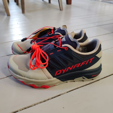 Selger et par Dynafit Sky DNA i størrelse 44,5. Dette er en svært lett og responsiv terrengløpesko, utviklet for konkurranse og raske turer i teknisk terreng.