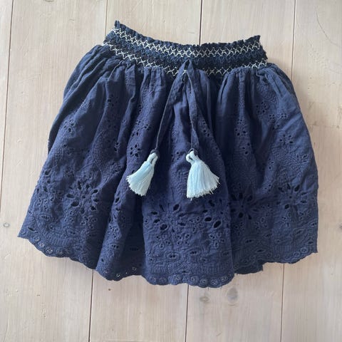 Blått skjørt med hvite detaljer fra Polarn o. Pyret i str 122/128.