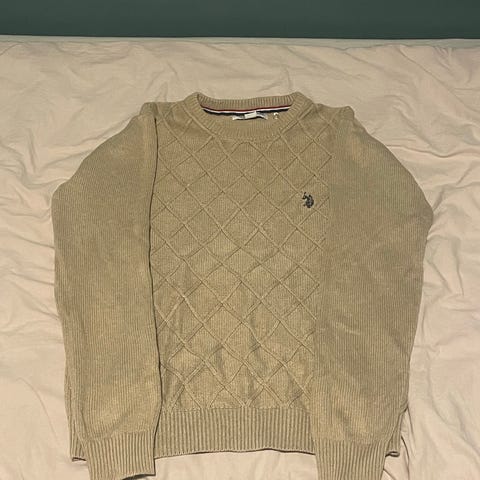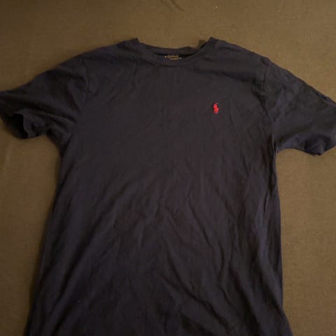 Ralph Lauren Polo genser for herre i størrelse M. Genseren er blå og laget av bomull. Modellen har halv glidelås i halsen, kengurulomme foran og ribbestrikkede kanter nederst og på ermene. Stor «POLO Ralph Lauren»-logo er brodert på brystet, og den karakteristiske polo-spilleren er brodert på ermet. Passer som hverdagsgenser eller mellomlag i kjøligere vær.