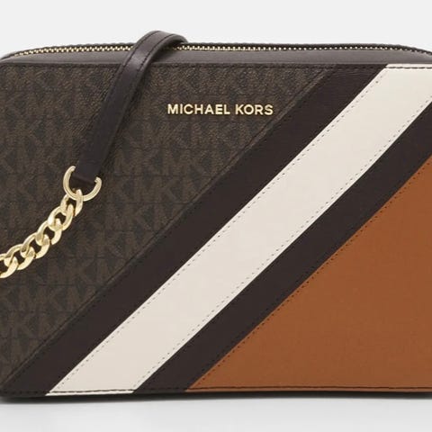 Coach skulderveske i lær til dame. Vesken har et stripet mønster i lyse og rosa toner og en rektangulær fasong. Den har klaffåpning med magnetlukking og innvendige rom, inkludert et rom med glidelås. Det følger med en metallkjede som skulderrem. Egnet til oppbevaring av mindre eiendeler som lommebok, mobiltelefon og nøkler.
