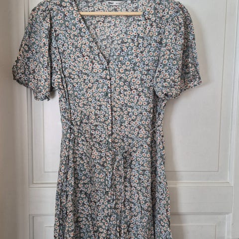 Kortermet Sommerkjole i kjølig grønn med hvitt blomstermønster med belte. Lite brukt.