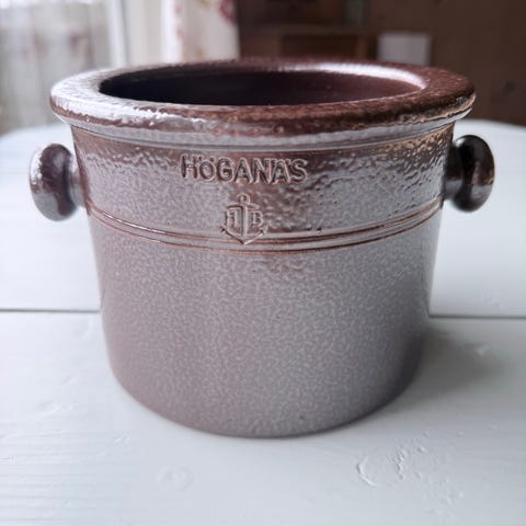 Selger denne tradisjonelt fine Hoganas krukken. Det er vanskelig å skrive navnet riktig, men det er vel forståelig for de som kjenner merket. HÖGANÄS er vel sånn det staves!