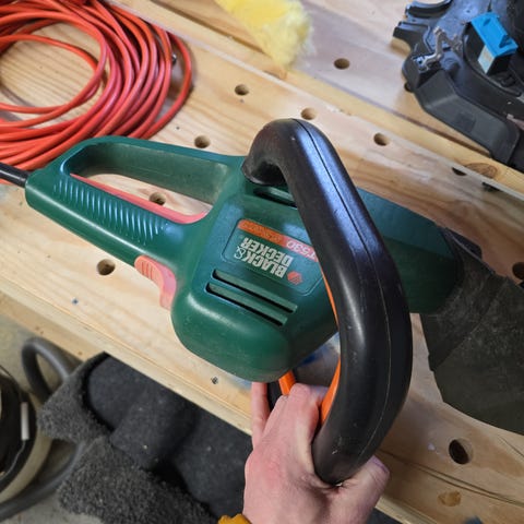 Black & Decker GX300 gressklipper med klippebredde på 30 cm. Elektrisk modell med ledning. Gressklipperen har grønt plastdeksel og håndtak i metall. Egnet for klipping av mindre plener og områder med jevnt underlag.