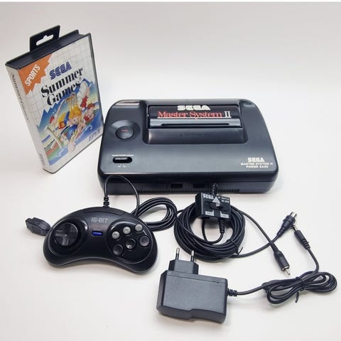 Sega master system spillkonsoll med ett spill selges.