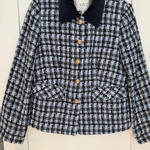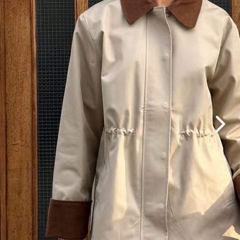 Myk, lett vattert vinterjakke med dekorative volanger langs fronten. Pent brukt og i god stand