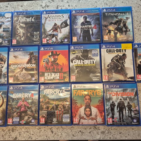 Selger flere PS4 og ett PS5-spill. Alle fungerer som de skal.