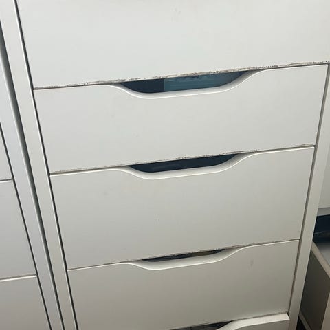 Kommode fra IKEA gis bort mot henting. Den ene skuffen er ødelagt, men det går ann å lime på fronten så det blir penere.