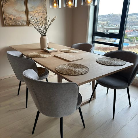 Det er 5 veldig fine og gode spisestoler som selges på grunn av utskifting av både bord og stoler:)