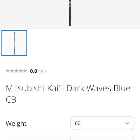 Skaftet er et Kaili 60 med stiff fleks (S flex). Det er beregnet for bruk i driver og leveres med justerbar adapter, slik at loft og innstilling kan tilpasses kompatibelt køllehode. Farge hovedsakelig svart med hvite detaljer.