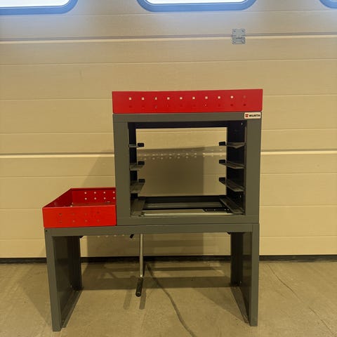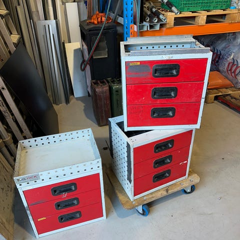 Verksted / ‘’racing’’ tralle - «hjemmebyggd». Solid tralle med gode hjul- tåler mye vekt. Noen mindre hull etter kompressor i nederste plate.