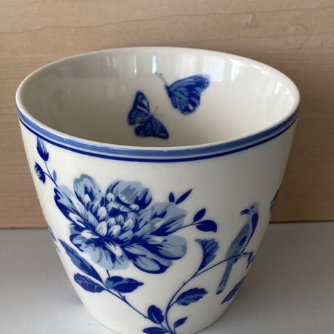 Søkeord tekopp kaffekopp krus yogitea porselen keramikk blåhvit blomstermønster mønster blomster dekor interiør kjøkkenutstyr samleobjekt samler limitededition gaveidé gavetips teutstyr kaffe te kopp mug krus300ml 300ml frokostbord porselenskopp dekorativ vintageinspirert klassisk stilren kos hygge avslapning velvære yogalivsstil merch merkevare samleobjekter hvittogblått blomsterdekorasjon borddekking servise stentøy stentøykopp fika hverdagsglede telykke billig bruktkupp gjenbruk bærekraftig