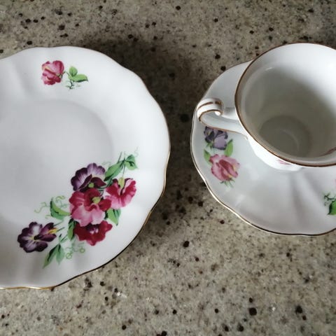 Alderspreget krakelering på noe av koppene, men fin stand med tanke på alder.