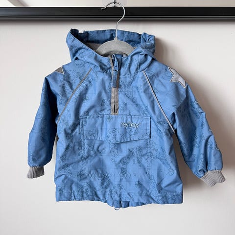 Reflex anorakk for barn i størrelse 92. Veldig praktisk med lukking/glidelås bak. Litt «skitten» foran på lommen.