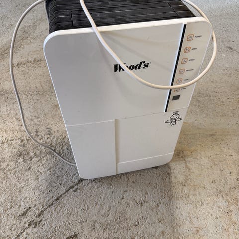 Woods avfukter som kan brukes for rom på opptil 40 m². Den er stillegående, har en 2-liters tank med auto-av når den er full, og inkluderer et finpartikkelfilter som fanger opp urenheter i luften.