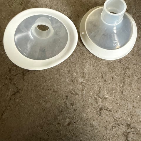 Kjøpt Januar i år. Brukt 1 måneds tid. Trenger den ikke lenger, da vi fullammer nå. Følger med et par ovale trakter i 27 mm, og et par runde trakter i 24 mm. Hendig i tilfelle du er usikker på størrelse.