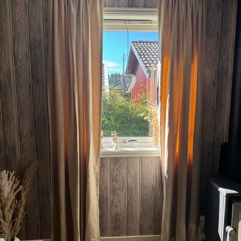 Rusta gardiner i rosa farge. Gardinene er rette lengder som henges på gardinstang. 2 x 135x220