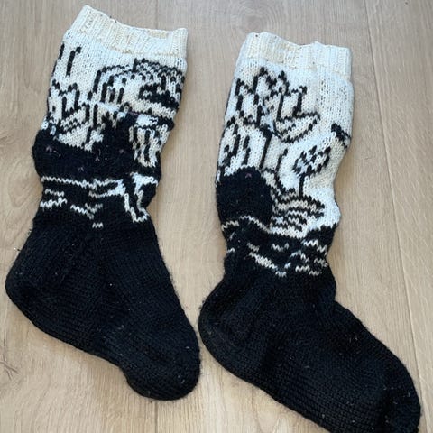 Strikket i Viking sportsragg. Sokker str 34/35. Selges samlet 400,-