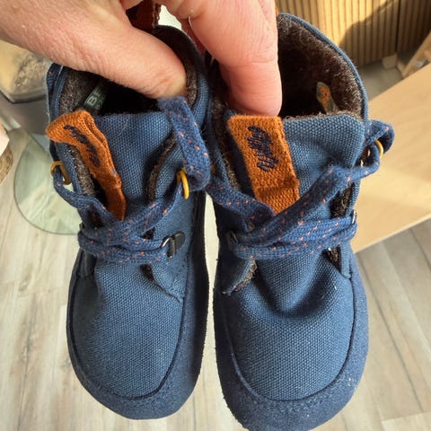 Nye Primigi Barfotsko i strl 22, da minsten hoppen over denne strl. Kun prøvd én gang utenfor døra og fremstår som nye. De er kjempegode vårsko som vi er veldig fornøyde med (har også størrelsen større 😄).