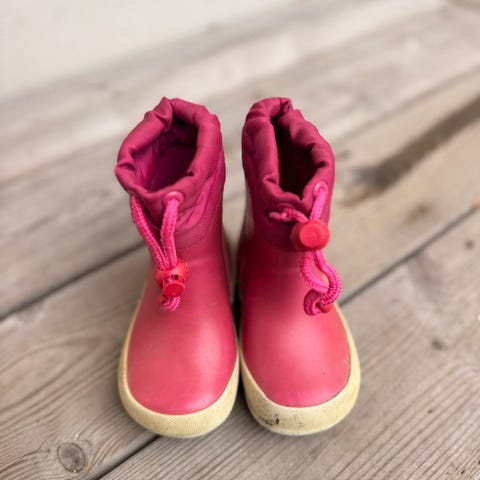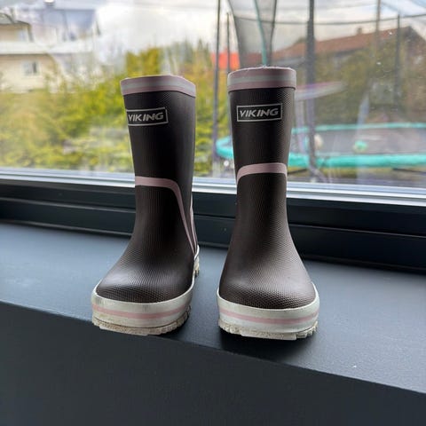 Selger to par støvler i størrelse 20. Sammen eller hver for seg. 50 kr per par. De mørkeblå støvlene er fra viking og de rosa fra Ponny. Lite brukt!