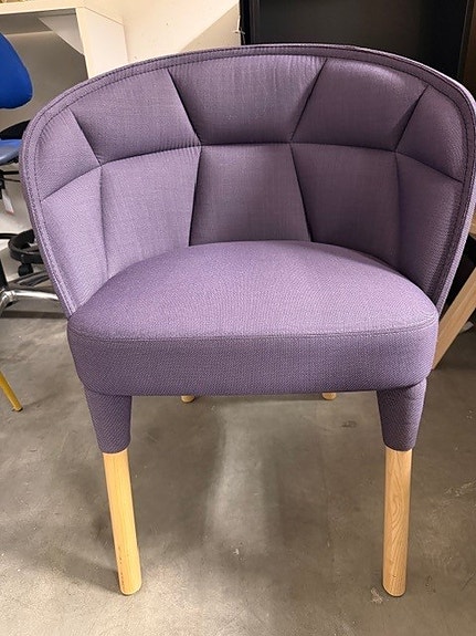 Koy er en blanding av stol og lenestol for ulike typer møteplasser, konferanserom og sosiale soner. Den har de komfortable egenskapene til en lenestol og det nette uttrykket til en stol. Det innbydende og samtidig karakteristiske designet gjør at den passer til mange forskjellige formål. Koy har alltid et fot kryss, og den finnes med og uten polstrede armlener. Vi selger en stykk stol til nok 2400,- vi har til sammen 3 på lager av samme type og stoff.