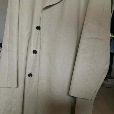 Frakken har dobbeltspent knepping og to frontlommer med klaff. Passer som ytterplagg i kjøligere vær.