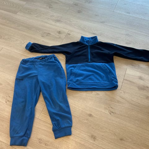 Bergans fleecesett for barn i størrelse 122. Settet består av fleecegenser med halv glidelås i halsen og matchende fleecebukse med strikk i livet. Fargen er lilla.