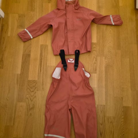 Ett pent brukt regntøy i størrelse 92 selges . Det har kunn vært brukt her hjemme og ikke i barnehage. Venstre fotstrikk er litt slitt, men det har ikke noe å si for bruken ☺️🌦️