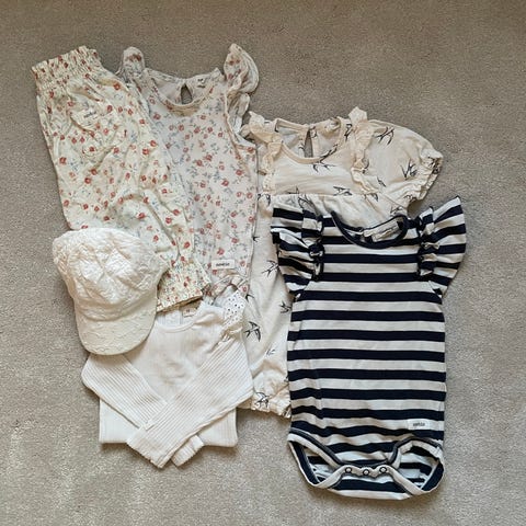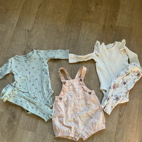Pakken inneholder seleshorts, bukse og 2 stk kortermet body.