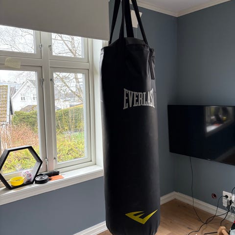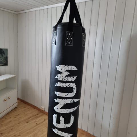 UFC boksesekk i svart farge. Sekken henges opp i tak med medfølgende kjetting og opphengsfeste, som vist på bildene. Egnet til boksing, kickboksing og annen kampsporttrening hjemme eller på treningsrom.