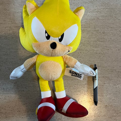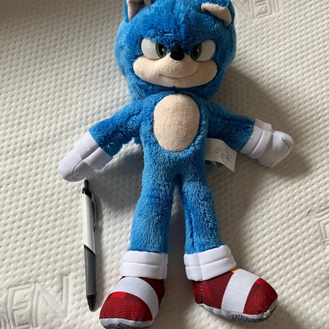 Bamsen har livlige og uttrykksfulle øyne som fanger personligheten til Sonic, og er laget av supermyke materialer som er perfekte for kos.