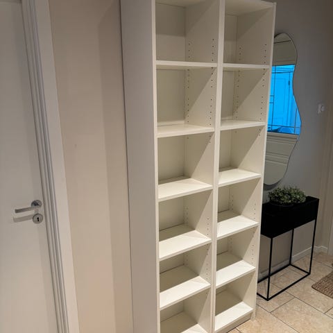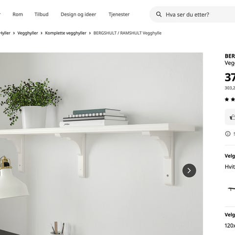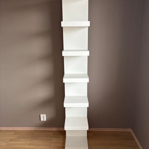 Under ett år gammel Ikea-hylle. Kan skrus fast i vegg i toppen av hylla
