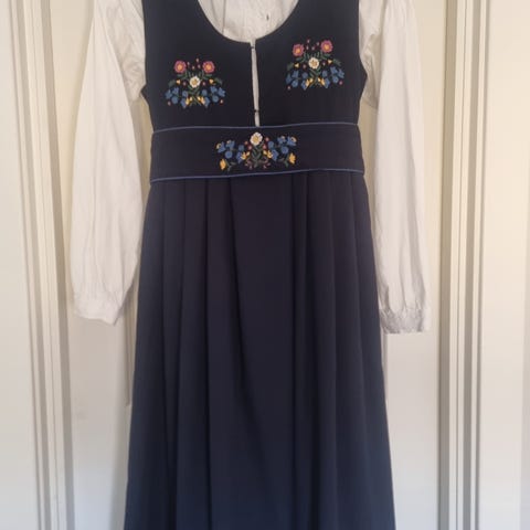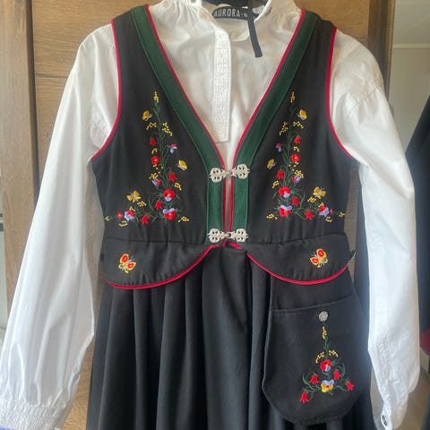 Så broderiet sitter derfor original noe høyere opp enn på vedlagt bilde.