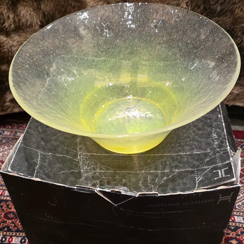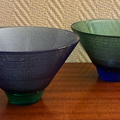 Hadeland Glassverk skåler i glass. Skålene har konisk form med strukturert overflate og glatt innside. De står på en liten fot og har en nøytral, transparent fargetone som passer til ulike borddekkinger. Egnet til servering av for eksempel dessert, snacks eller til bruk som mindre fruktskåler eller dekorative skåler i interiøret.