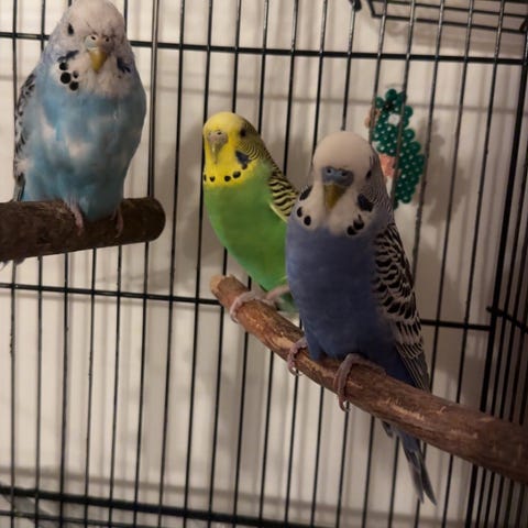 Vi ønsker at han kommer til en familie som har minst en undulat fra før av, og som er vandt med å la fuglene fly litt utenfor buret. 😊