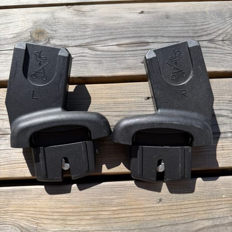 Selger pent brukte bilstoladaptere som passer Britax smile 3 barnevogn og Maxi-cosi cabriofix I-size babybilstol. Kan hende de passer nyere Britax vogn, det vet jeg ikke. Kan sende de mot at kjøper betaler for frakt.
