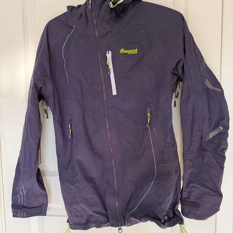 Bergans løe-/vindjakke for dame i størrelse S. Jakken er rød og laget i polyamid. Den har hel glidelås i kontrastfarge foran, høy krage og to frontlommer med glidelås. Nypris ca 1800