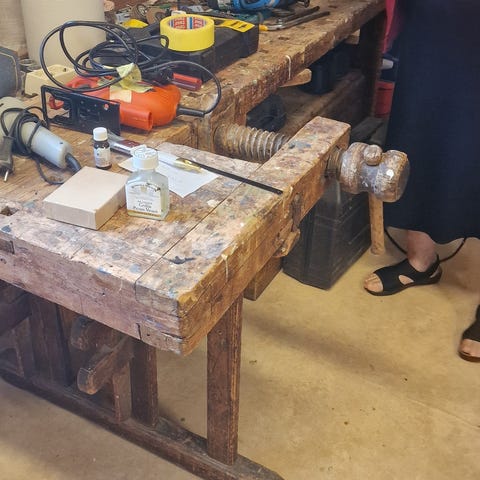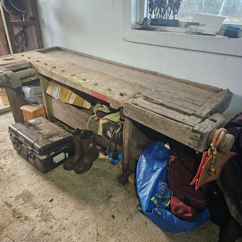 Pent brukt høvelbenk med to stål. Gi bud, benken skal bort fra garasjen.
