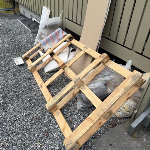Gir bort Europall trepall i naturfarget tre. Standard pall med åpninger for gaffeltruck og jekketralle. Egnet til lagring, transport eller som utgangspunkt for enkle bygge- og gjør-det-selv-prosjekter, for eksempel møbler eller hageprosjekter.