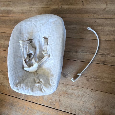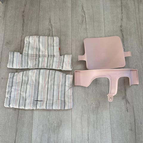 Godt brukt babypute til Stokke Tripp trapp stol. Brukt til to barn, og dermed noen flekker jeg ikke har fått bort i vask (se bilde). Også et hull på baksiden. Fungerer som den skal :)