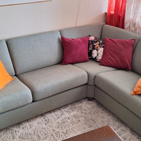 Flott stor hjørnesofa, 6 år, beige selges grunnet flytting. Ny pris 22.000,-Kom gjerne med bud!