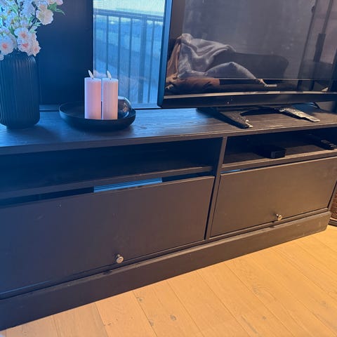 Selger en brukt TV-benk i god stand. Enkel og praktisk med hylle og skap for oppbevaring.