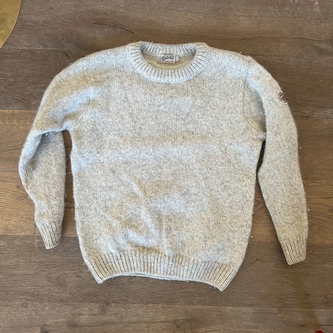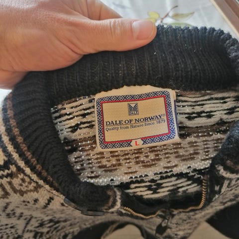 Devold ullgenser for herre i størrelse L. Genseren er i ull og har et flerfarget mønster med mørk øvre del og lysere felt med tradisjonelt mønster. Den har rund hals og knappestolpe med dekorative knapper foran. Passer til hverdagsbruk og utendørsaktiviteter der ullens isolerende og fukttransporterende egenskaper er nyttige.