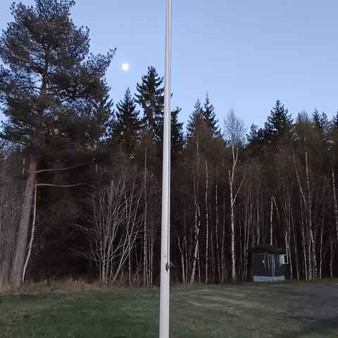 Flaggstang 12 meter glassfiber stang hengsel må sveises. Festet røk under en storm. Må sveises sammen igjen. Med hengselet feste for å enkelt ta ned og opp flaggstangen. Selges fordelaktig da festet må sveises. Kan og brukes slik den er men er da mere knotete å ta ned og opp igjen. For flaggline bytte. Flaggstanga er skrudd ned og klar for avhenting
